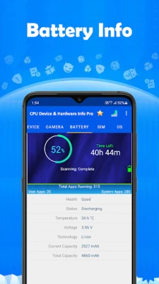 CPU Device & Hardware Info Pro นำเสนอข้อมูลที่สมบูรณ์และละเอียดเกี่ยวกับสมาร์ทโฟน Android ของคุณ เข้าถึงข้อมูลเชิงลึกเกี่ยวกับ CPU, อุปกรณ์, กล้อง, แบตเตอรี่, SIM, ระบบปฏิบัติการ, จอแสดงผล, หน่วยความจำ และเซ็นเซอร์ทั้งหมดได้อย่างง่ายดายในที่เดียว