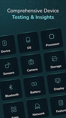 ค้นพบข้อมูลเชิงลึกที่ครอบคลุมทุกแง่มุมของอุปกรณ์ ไม่ว่าจะเป็นรายละเอียดรุ่น, ระบบปฏิบัติการ, หน่วยประมวลผลพร้อมข้อมูล RAM, รายชื่อเซ็นเซอร์ทั้งหมดที่ทำงานอยู่หรือไม่ได้ใช้งาน, ข้อมูลกล้องหน้าและหลัง, สถานะพื้นที่เก็บข้อมูล, อุณหภูมิแบตเตอรี่, รายละเอียดบลูทูธ, ความหนาแน่นและความละเอียดของหน้าจอ, รายการแอปพลิเคชันที่ติดตั้ง รวมถึงข้อมูลเครือข่ายและคุณสมบัติเฉพาะของเครื่อง นอกจากนี้ ยังมีชุดการทดสอบฮาร์ดแวร์อย่างละเอียด ไม่ว่าจะเป็นการตรวจสอบหน้าจอสัมผัส, มัลติทัช, เซ็นเซอร์วัดแสง, ไฟฉาย, การสั่น, การทำงานของเซ็นเซอร์ลายนิ้วมือ, เซ็นเซอร์ความใกล้ชิด, มาตรวัดความเร่ง, ปุ่มปรับเสียง, การเชื่อมต่อบลูทูธ และช่องเสียบหูฟัง เพื่อให้คุณมั่นใจว่าทุกฟังก์ชันยังคงทำงานได้ดีเยี่ยม