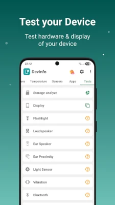 ดื่มด่ำไปกับการทำความเข้าใจอุปกรณ์ของคุณอย่างที่ไม่เคยมีมาก่อน แอปพลิเคชันนี้จะนำเสนอข้อมูลเชิงลึกที่ครอบคลุมเกี่ยวกับฮาร์ดแวร์และซอฟต์แวร์ ทั้งรายละเอียดหน่วยประมวลผลกลาง (CPU), หน่วยความจำ (RAM), หน่วยประมวลผลกราฟิก (GPU), สถานะแบตเตอรี่, ข้อมูลซิมการ์ด, เครือข่าย, กล้อง, และจอแสดงผล ตรวจสอบการทำงานของเซ็นเซอร์แบบเรียลไทม์และอุณหภูมิของฮาร์ดแวร์ เพื่อให้แน่ใจว่าทุกส่วนของอุปกรณ์ทำงานได้อย่างราบรื่น นอกจากนี้ ยังมีชุดเครื่องมือทดสอบประสิทธิภาพ ไม่ว่าจะเป็นการทดสอบหน้าจอ, ปุ่มกด หรือเซ็นเซอร์ต่างๆ เพื่อยืนยันว่าอุปกรณ์ของคุณยังคงอยู่ในสภาพสมบูรณ์ พร้อมใช้งานทุกเมื่อ