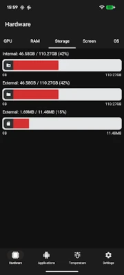 เจาะลึกยิ่งขึ้นไปกับการตรวจสอบรายละเอียดของระบบปฏิบัติการ Android ที่คุณใช้ เมตริกหน้าจอที่สำคัญ และข้อมูลจากเซ็นเซอร์ต่างๆ ที่มีอยู่ในเครื่อง รวมถึงสถานะแบตเตอรี่อย่างครบถ้วนเพื่อการจัดการพลังงานที่มีประสิทธิภาพ คุณยังสามารถเข้าถึงข้อมูล MAC Address ของ WiFi และ Bluetooth ได้ (สำหรับ Android รุ่นเก่า) และรายละเอียดการ์ดเสียง เพื่อให้คุณไม่พลาดทุกข้อมูลสำคัญเกี่ยวกับองค์ประกอบภายในของสมาร์ทโฟนหรือแท็บเล็ตของคุณ