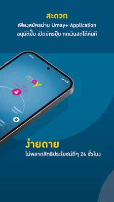 ปลดล็อกทุกความสะดวกสบายทางการเงินในมือคุณด้วย Umay+ Application จาก Umay+ คือประตูสู่โลกการเงินที่ง่าย ปลอดภัย และเต็มไปด้วยประสิทธิภาพ ออกแบบมาเพื่อมอบความสะดวกสบายสูงสุดในทุกการทำธุรกรรม ให้คุณเข้าถึงบริการทางการเงินได้ทุกที่ทุกเวลา ด้วยระบบความปลอดภัยที่ได้มาตรฐาน คุณสามารถปลดล็อกการใช้งานได้อย่างรวดเร็วเพียงแค่ปลายนิ้วสัมผัส ไม่ว่าจะเป็นการใช้รหัส PIN หรือระบบยืนยันตัวตนด้วย Touch ID/Face ID ที่ล้ำสมัย